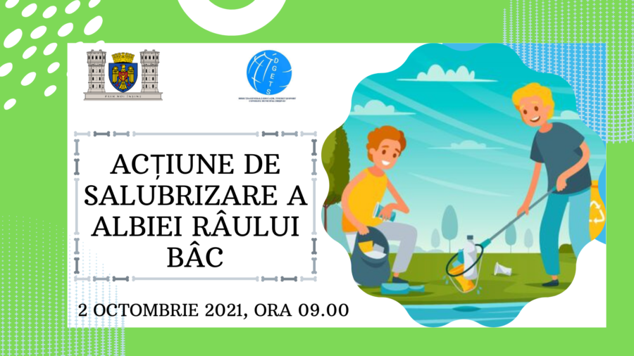 Primăria municipiului Chișinău informează că sâmbătă, 2 octombrie 2021, ora 9.00, va fi desfășurată o amplă acțiune de salubrizare a albiei râului Bâc. Reprezentanții municipalității vor fi implicați la curățenie pe tronsonul str. Ismail – str. Lunca Bâcului.