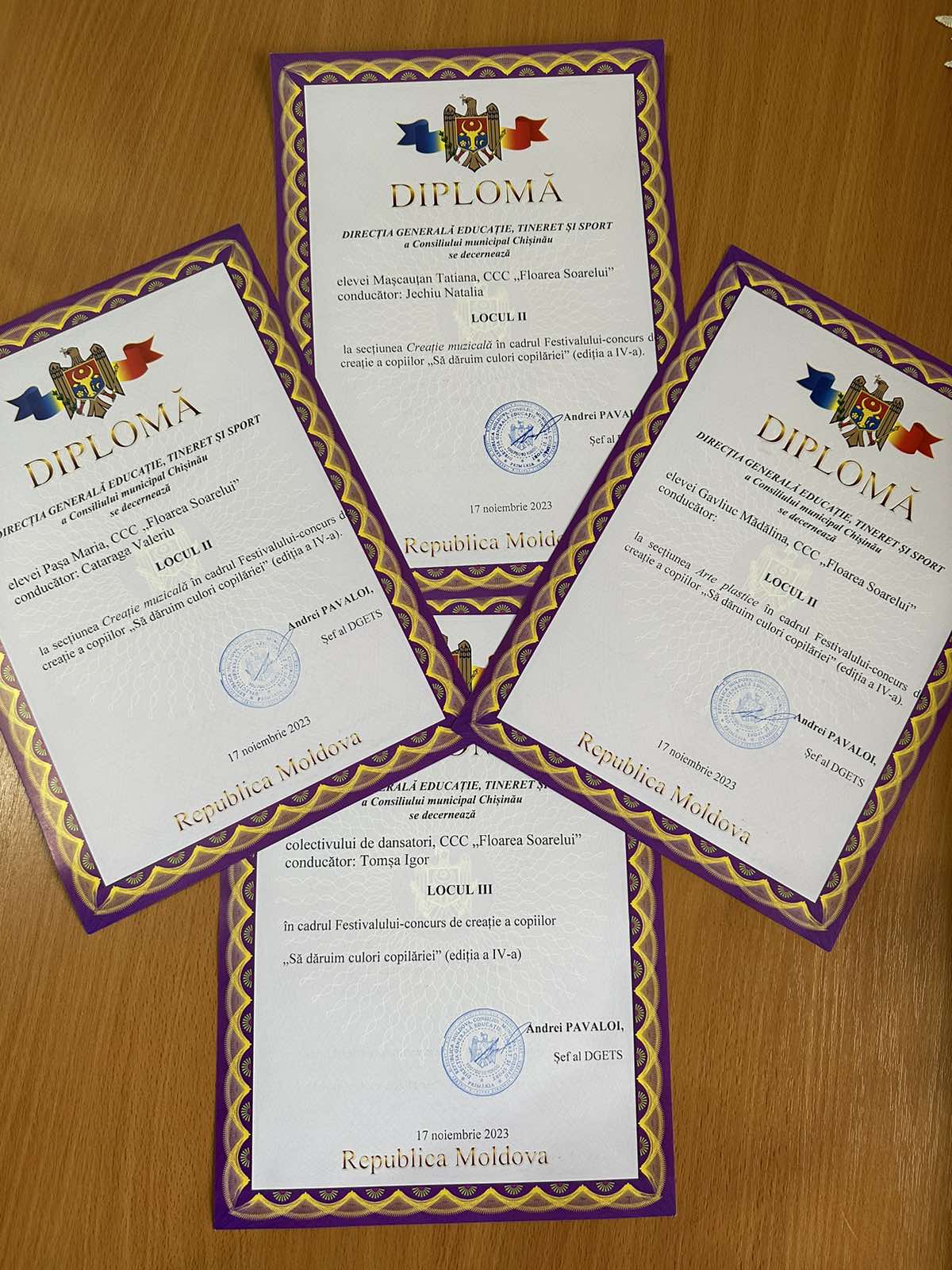Adresăm mesaje de felicitare Centrului de Creație ”Floarea Soarelui” din sectorul Centru care a obținut premiul mare, precum și alte locuri de frunte în cadrul festivalului-concurs de creație a copiilor ”Să dăruim culori copilăriei”, ediția IV.