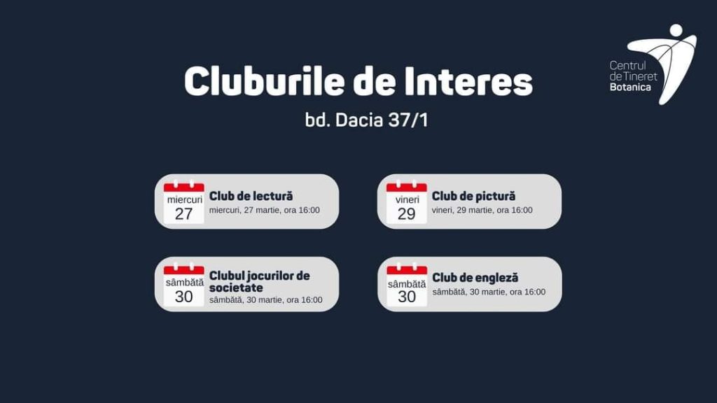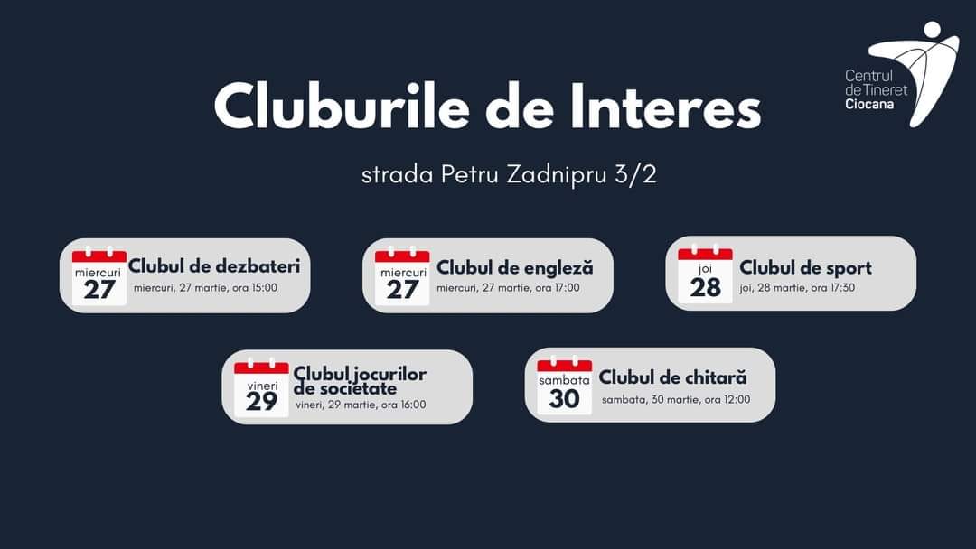 📣Direcția Generală Educație Tineret și Sport aduce la cunoștință publicului că Centrul Municipal de Tineret Chișinău găzduiește săptămânal o serie de cluburi de interes menite să ofere tinerilor oportunități de învățare într-o atmosferă non-formală și interactivă.
